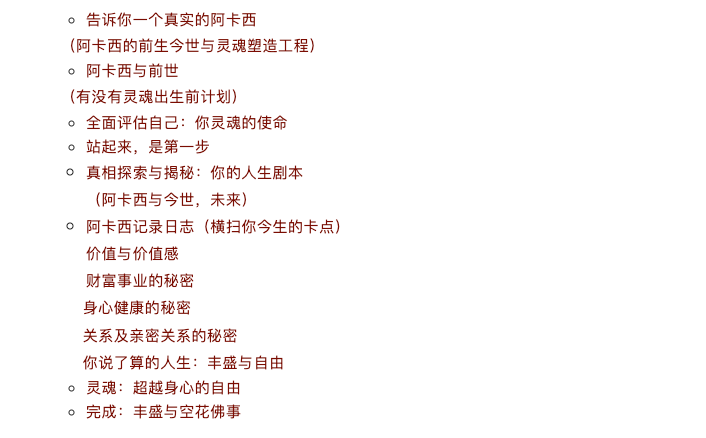 《科学阿卡西灵魂塑造工程 》录播+1个月群辅导 视频21集。疗愈课程,希望得到自我成长或者帮助别人成长的可以学习。 声明:本站所有文章,如无特殊说明或标注,均为本站原创发布。任何个人或组织,在未征得本站同意时,禁止复制、盗用、采集、发布本站内容到任何网站、书籍等各类媒体平台。如若本站内容侵犯了原著者的合法权益,可联系我们进行处理。