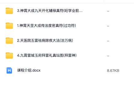 弘一 民间家传神霄派(二)神霄玉府大成秘法三堂,传授四大法门,包含录音和文档。注意,课程已经进行了压缩,需要解压才能学习。