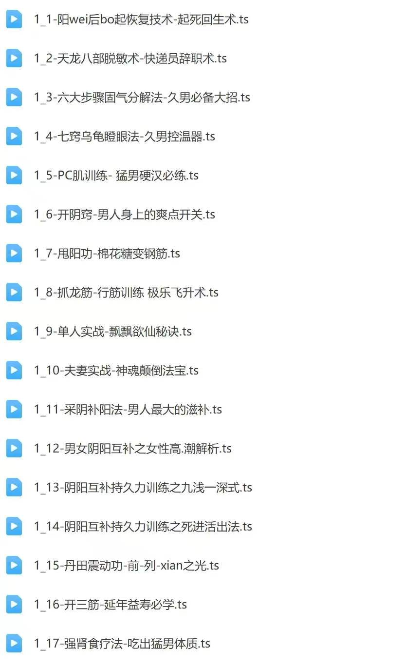 本套课程是一门旨在提升男性自信与魅力的综合训练课程。该课程内容丰富,涵盖了多个方面,包括身体恢复、性技巧、夫妻实战技巧、阴阳互补训练、排毒功、丹田震动功等,同时结合了古代房中术的渊源和现代养生方法,如站桩、打坐等课程的主要目标是通过一系列练习帮助男性提升身体素质和性能力,同时增强自信心和吸引力。例如,课程中提到的“死而复生术”、“控温器”、“开阴窍”等内容,都是为了帮助学员在生理和心理上实现全面的提升课程还强调了感恩的重要性,认为感恩能够拓宽心灵,帮助人们发现生活中的美好整体来看,“元元幸福神功”不仅是一门注重身体修炼的课程,也是一门结合心理调适和生活智慧的综合性训练课程。
