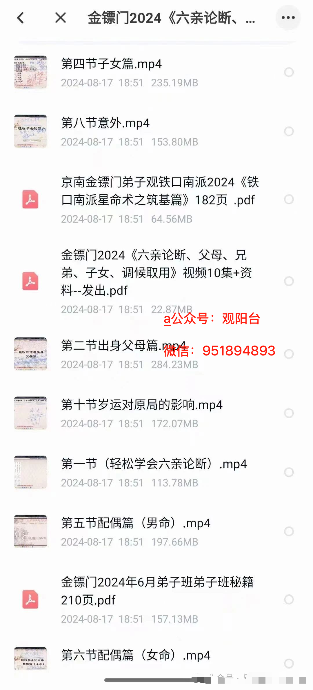 金镖门2024《六亲论断、父母、兄弟、子女、调候取用》视频10集+资料pdf2册。视频上有京南道人的微信,每个视频都有这个水印,电子书也有水印。
