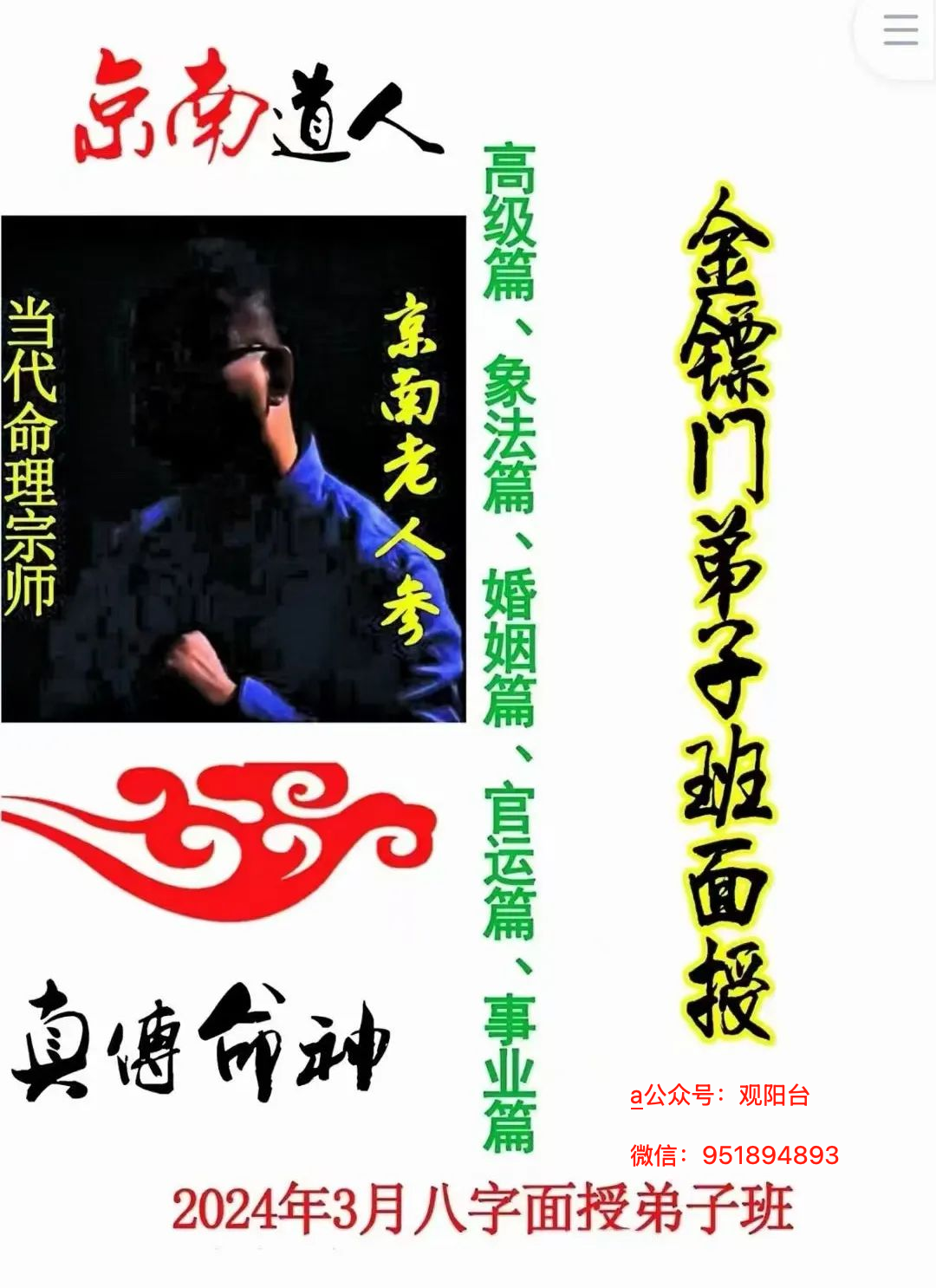 金镖门京南老人参2024年《当代命理宗师、真传命神八字面授弟子班》.pdf 177页,可以不必看视频就能快速进步的一套命理书籍,当然前提是你的基础够扎实,比如滴天髓认真看三遍!
