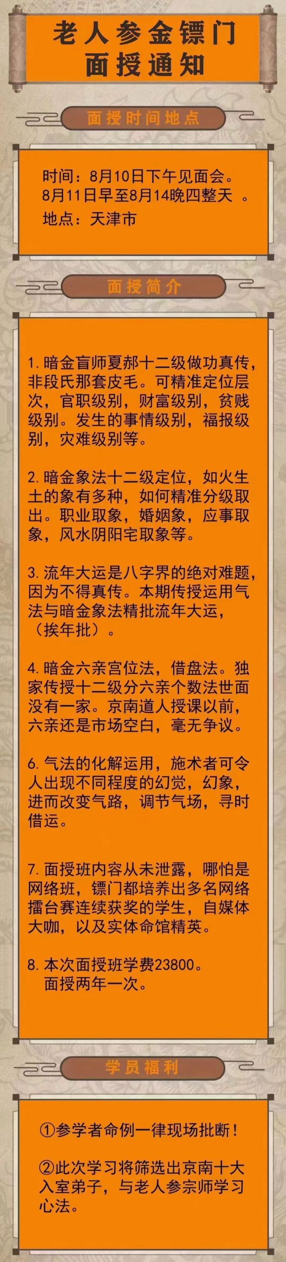 老参人金镖门面 授 通 知
