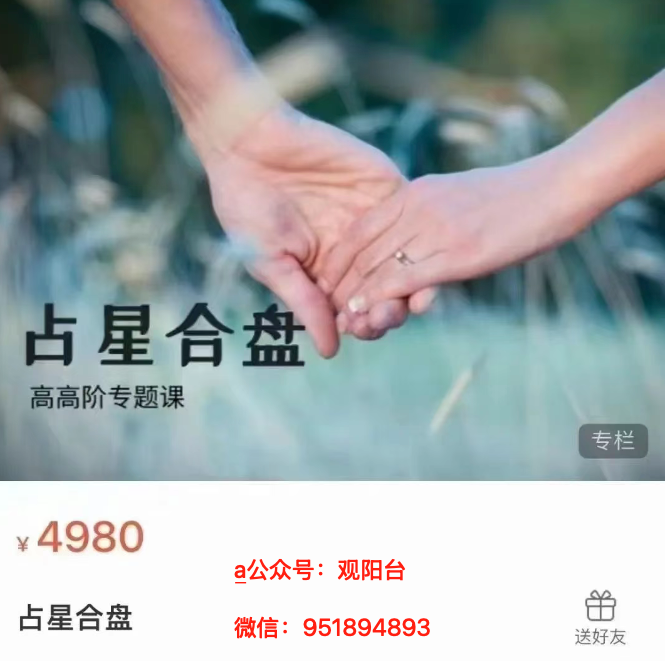 陈安逸占星合盘视频6集。陈安逸老师讲解占星合盘,其实性质和合八字差不多。