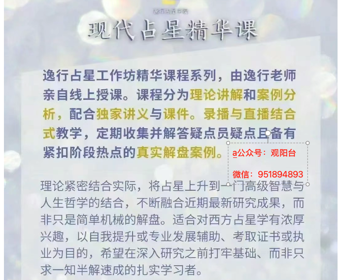 逸行现代占星精华班初中阶课程