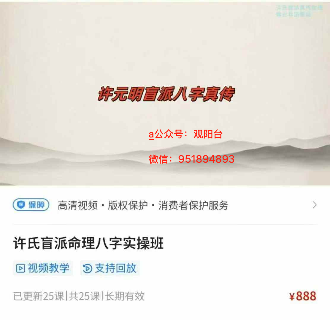 许元明派盲八字真传 许氏盲命派理八实字操班 25节频视课