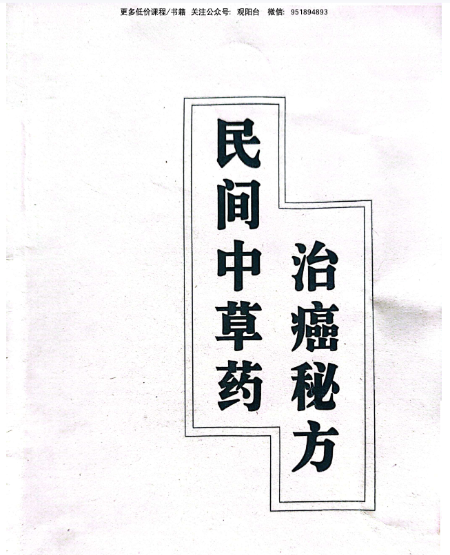 《民间中草药治癌秘方》共38页,内容有:癌症早期特征(鼻咽癌、胃癌、乳腺癌、宫颈癌、肺癌、肝癌、食道癌、阴茎癌、血癌……)、对癌症提高警惕、民间治癌秘方等等。