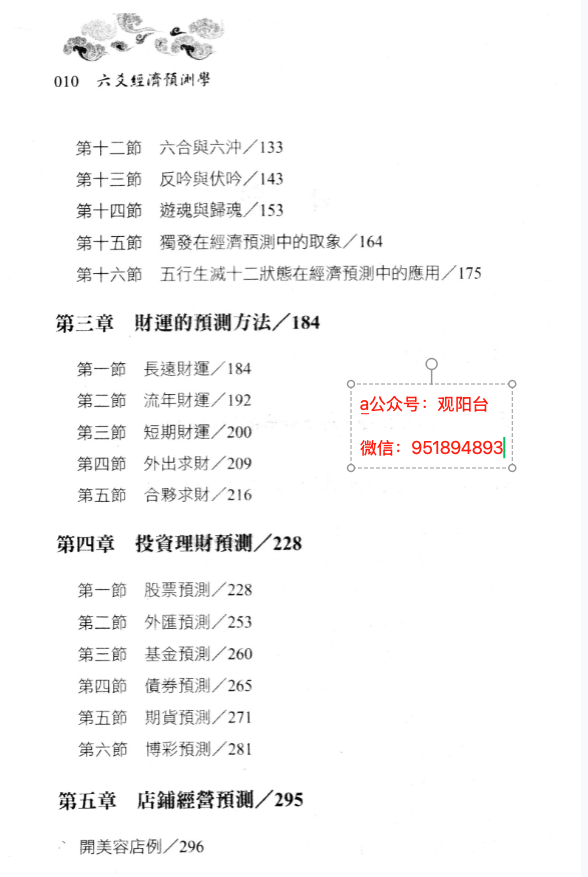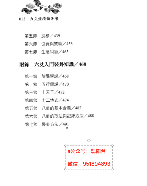 王虎应 六爻经济预测学.pdf 502页,王虎应老师专门针对经济类的六爻预测专著。 声明:本站所有文章,如无特殊说明或标注,均为本站原创发布。任何个人或组织,在未征得本站同意时,禁止复制、盗用、采集、发布本站内容到任何网站、书籍等各类媒体平台。如若本站内容侵犯了原著者的合法权益,可联系我们进行处理。