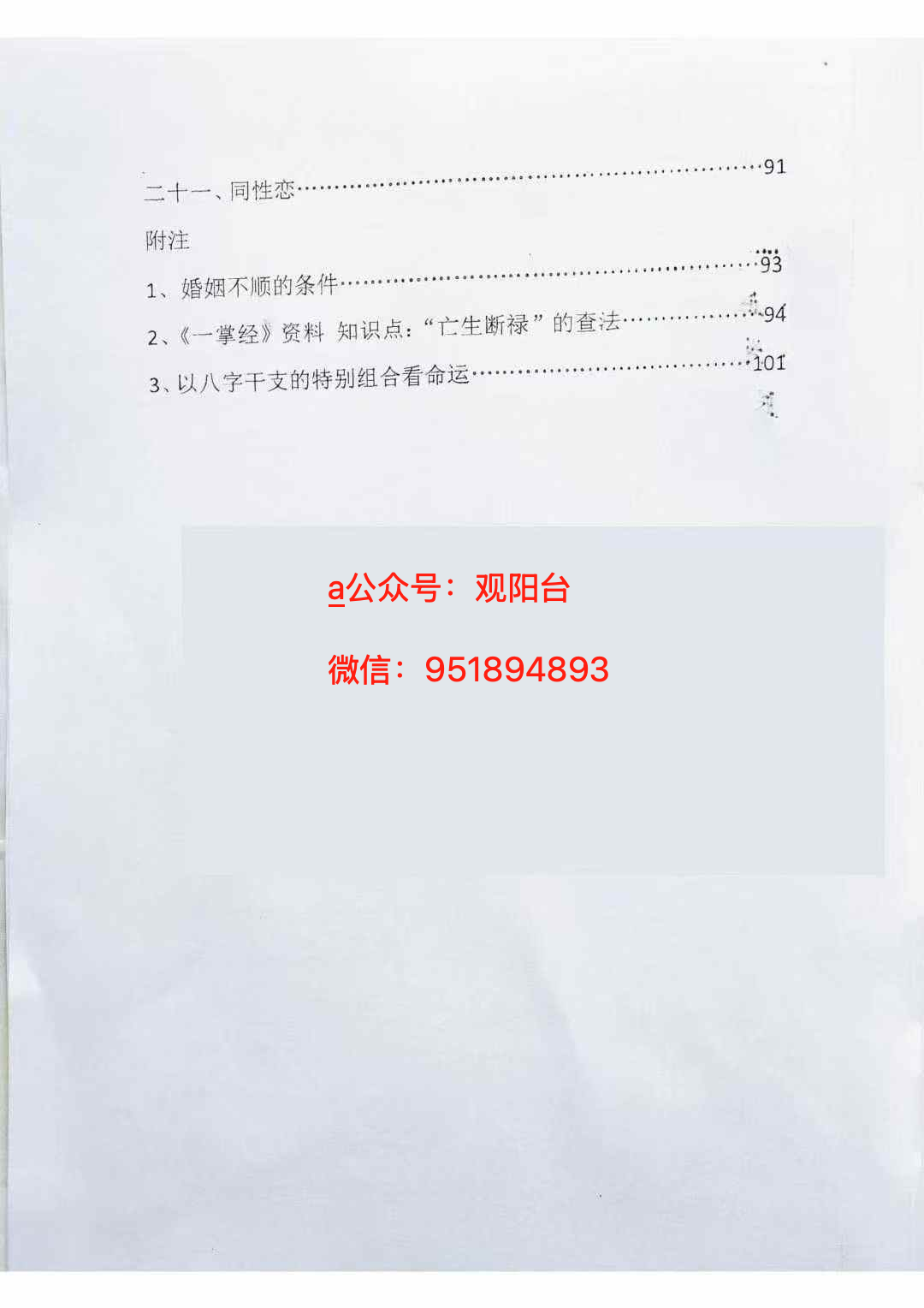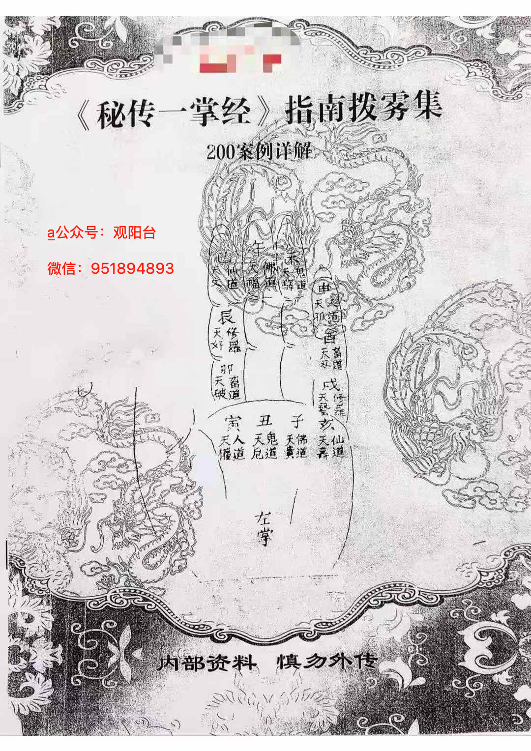 《神机灵数一掌经》秘传一掌经指南拨雾集200案例详解 页数:105页,目录及部分内容如图 声明:本站所有文章,如无特殊说明或标注,均为本站原创发布。任何个人或组织,在未征得本站同意时,禁止复制、盗用、采集、发布本站内容到任何网站、书籍等各类媒体平台。如若本站内容侵犯了原著者的合法权益,可联系我们进行处理。