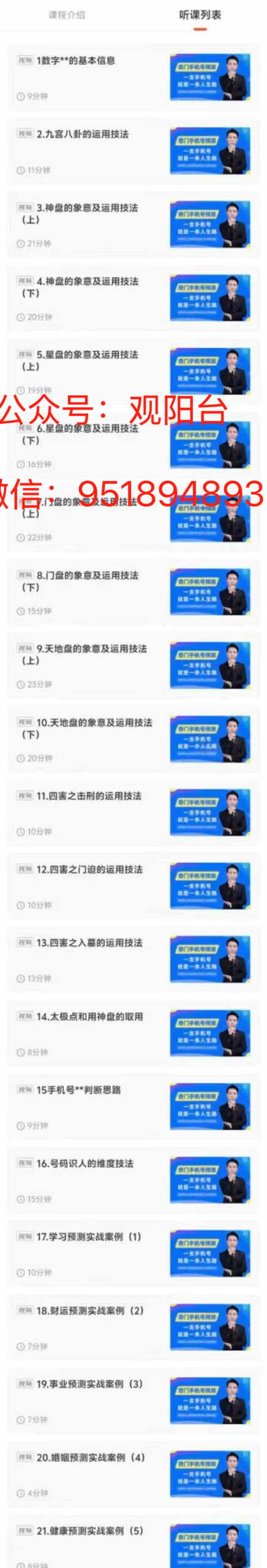 奇门手机号字、数‬奇门手机预号‬测技法教程 21节频视‬课 目录如下: