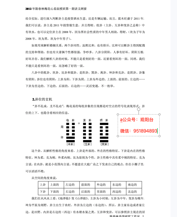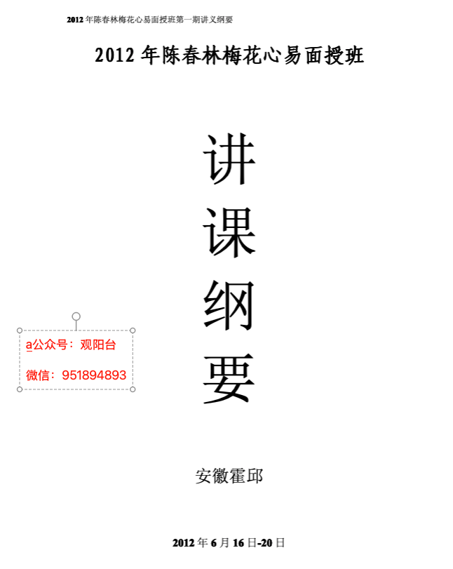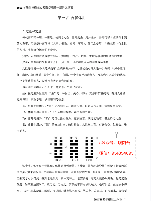 陈春林-2012年1-9月梅花心易录音+讲义。内容讲解的也不少,多在基础上练功夫,但断病和断流年运却是一个不小的突破。 声明:本站所有文章,如无特殊说明或标注,均为本站原创发布。任何个人或组织,在未征得本站同意时,禁止复制、盗用、采集、发布本站内容到任何网站、书籍等各类媒体平台。如若本站内容侵犯了原著者的合法权益,可联系我们进行处理。