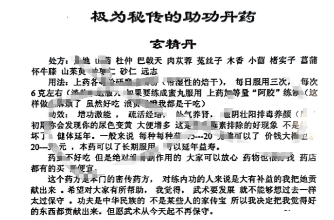 极为秘传的助功丹药.pdf,2页。主要有玄精丹,玄关丹和助功药酒三种方子,适合练习内功的人专用。注意:请在中医的叮嘱下用方子,否则后果自负。