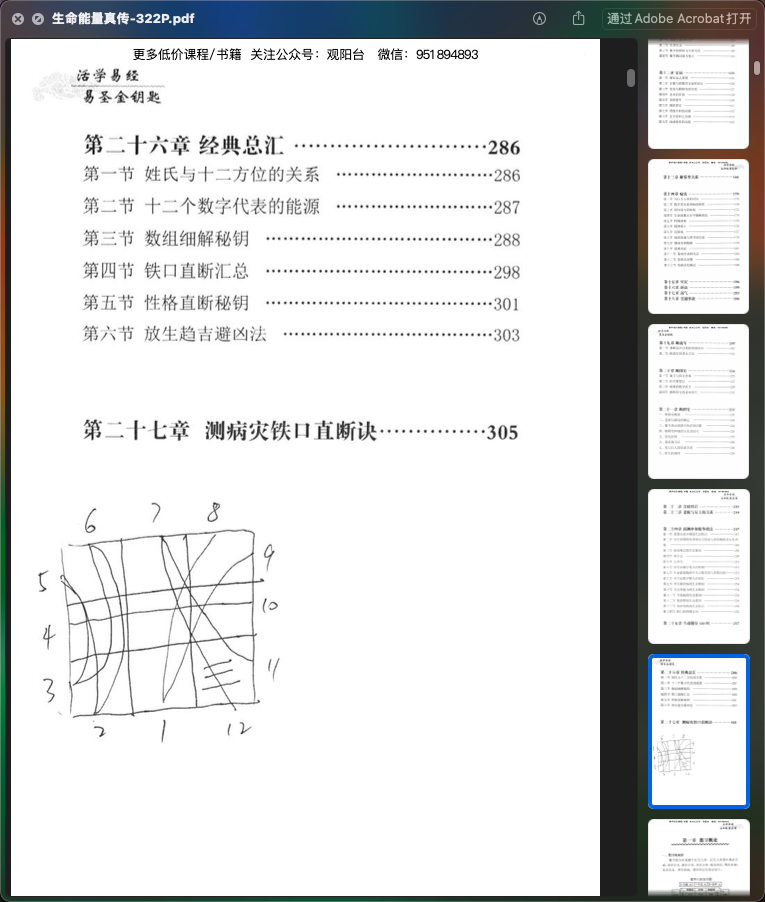 孙铭鑫-生命能量真传.pdf,322页。讲解数字能量,并且什么大运,财运,官运,生命能量断卦,断性格,看交往,子嗣,邻里关系,病灾,牢狱,交通事故,断流年运气等,几乎就是在看八字
