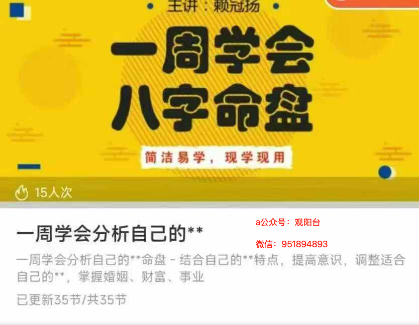 赖冠扬一周学会分析自己的八字命盘35集视频课