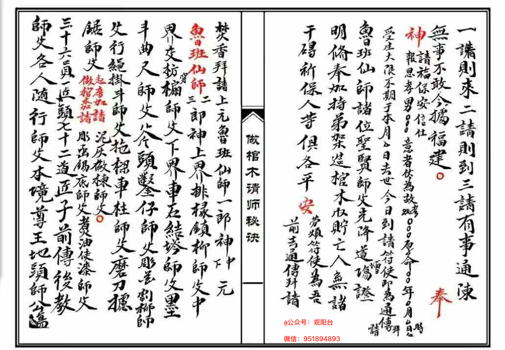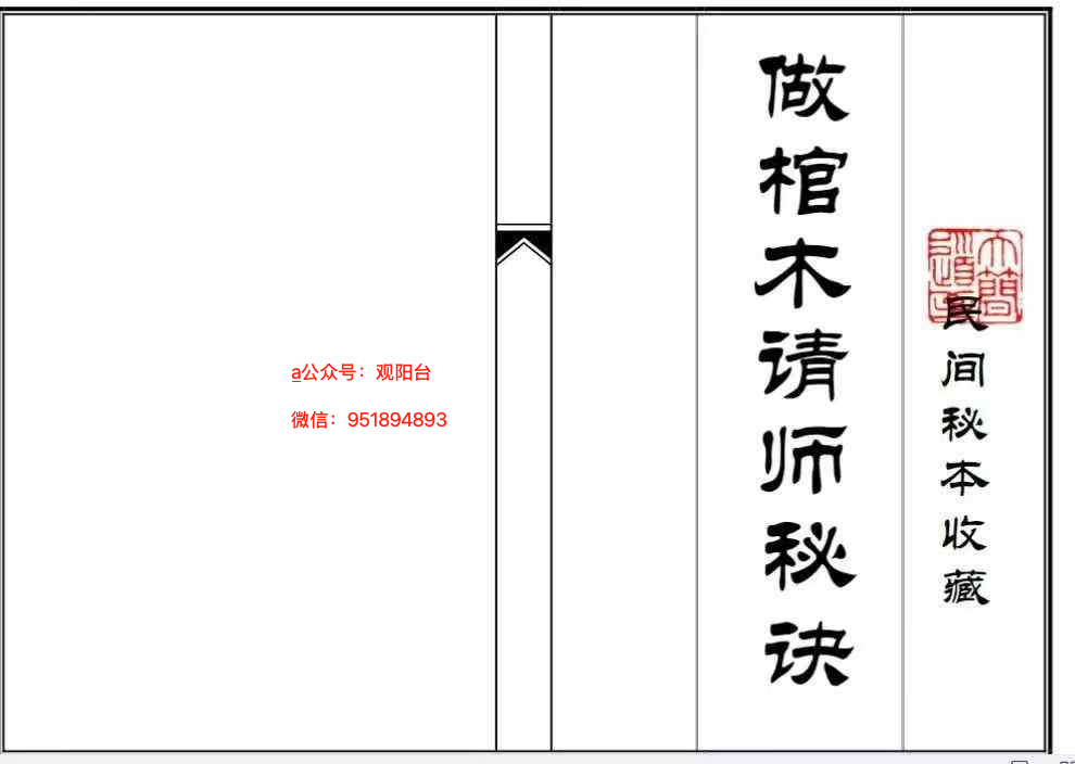内容:做木请师父秘密,出门有瘟氣加请,变家变厝,变五尺杖,变完再存身,去到主人厝师傅孰安棹上,座椅,食茶烟,洗面,自己变身,变肉菜,变饭,变筋,床后壁上諱,斩邪斩鬼断根源,心肝头上諱,寿板架在柴马上,场上諱,板上諱,平安墜柴法,用二十八宿,开天门,避地户,塞鬼路,棺木做完谢聖,时气做棺木谢聖完送神师父不可送安座。请师傅回场,七星北斗盖身,蓝中諱,变米,变鸡,去千邪百鬼,变路,回头路中变火坑,过桥变桥,桥中毒蛇,五龍决断,时气墜棺,斧头在棺面塔三下就钉,拆神廟諱,制重丧式,入棺忌入冲,鲁班煞日,斧头煞日,青龙华盖,起盖造坟师主忌方,月家凶方,日家凶方,瘟鬼所在日时,收诸煞符,治腹心痛符,分犬口,论方道退利。