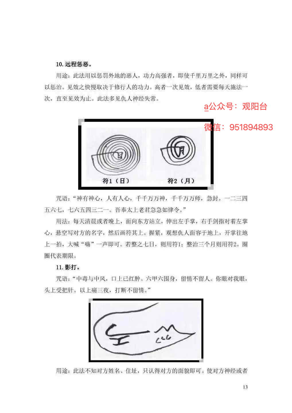 内容:请师修炼,神武灵拳,驱恶法,五雷封禁和五雷解禁法,五雷掌,防打,反打,寄打,神箭术,金蝉脱壳,追赶坏人,远程惩恶,影打,治病救人止血法,治发烧和发冷法,解酒法,化骨法,人缘和睦封口法,人缘促进法,家庭和睦防外遇法,夫妻和合,防盗迷魂法,催失踪者回家,催债法,戒赌法,解法
