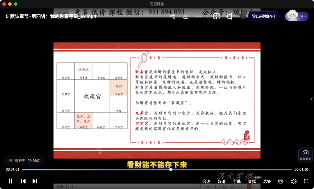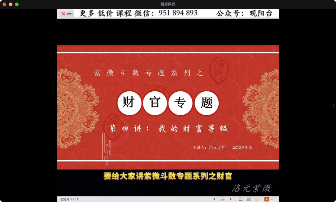 【洛元】紫微斗数财官专题课【原版】视频9集,每集10多分钟到20多分钟不等,只讲财运和事业规划。