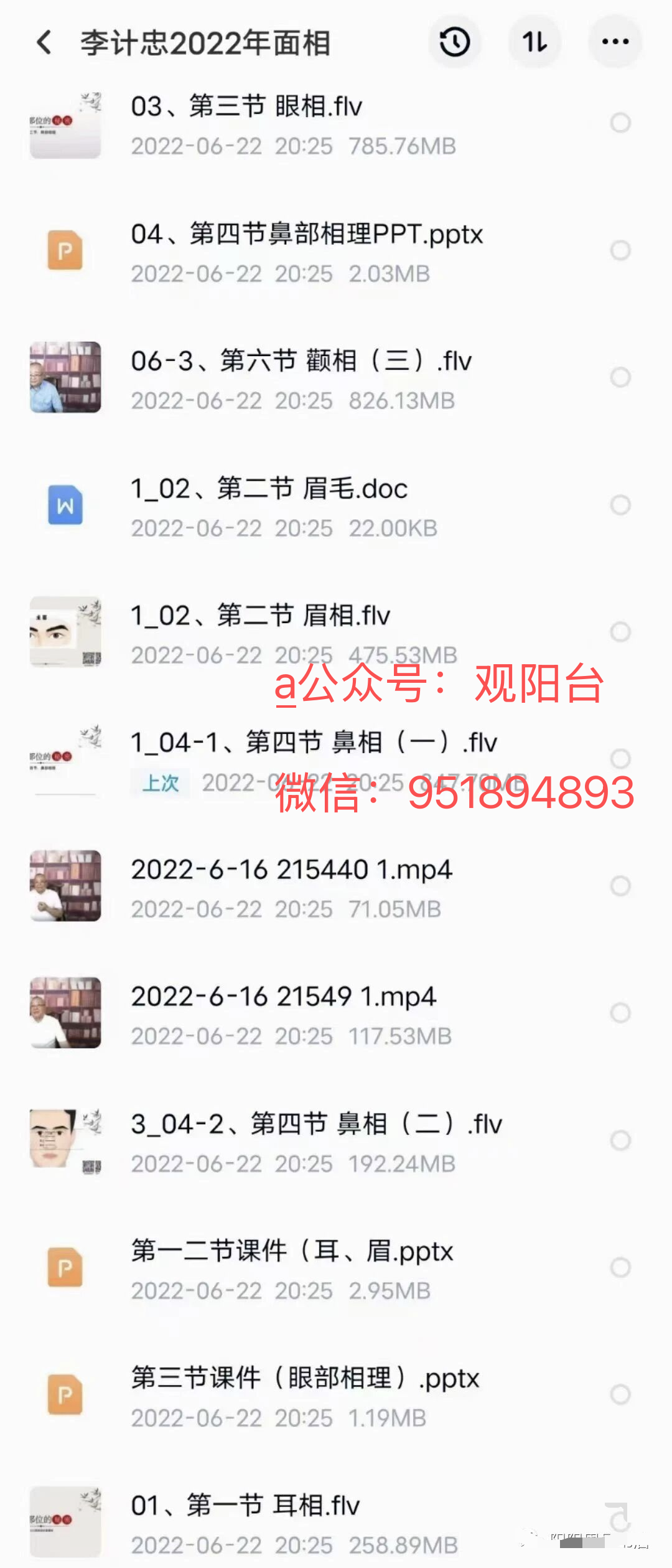李计忠2022年面相课程视频7集+文档4个,直播教你怎么看面相。