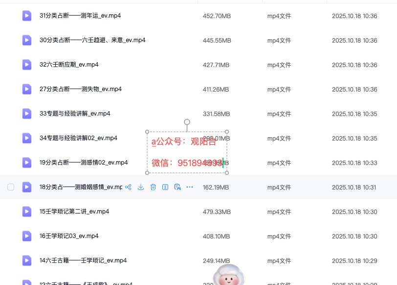 | | ├──25分类占断——测孕产.mp4 713.29M