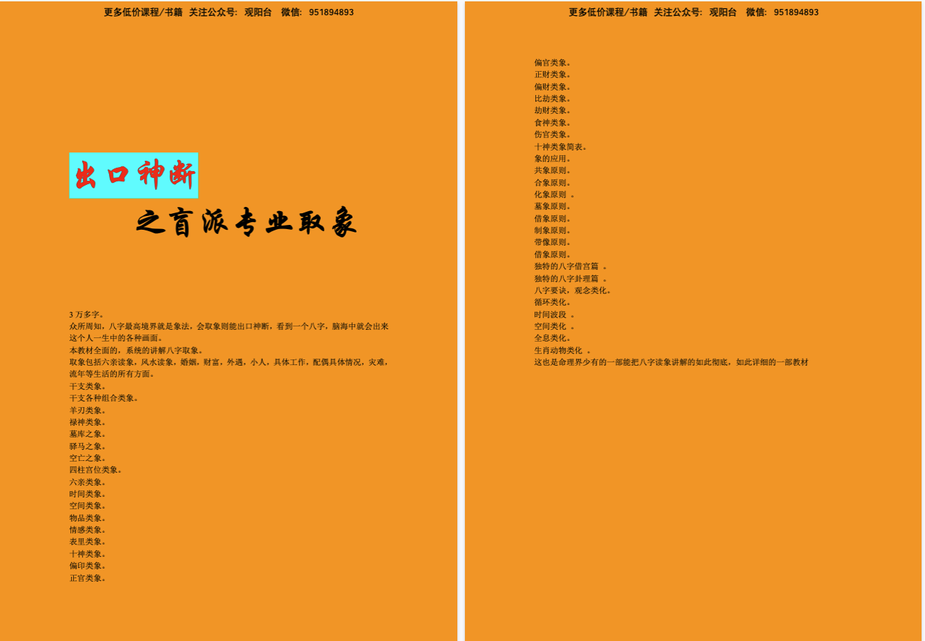盲派出口神断之盲派专业取象.pdf,66页。教你各种专业取象,从而达到神断的效果 声明:本站所有文章,如无特殊说明或标注,均为本站原创发布。任何个人或组织,在未征得本站同意时,禁止复制、盗用、采集、发布本站内容到任何网站、书籍等各类媒体平台。如若本站内容侵犯了原著者的合法权益,可联系我们进行处理。