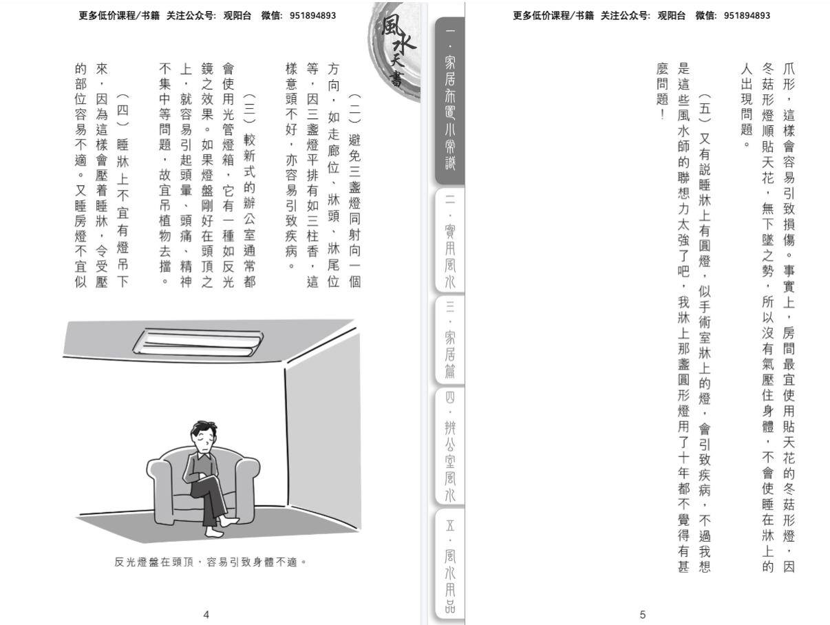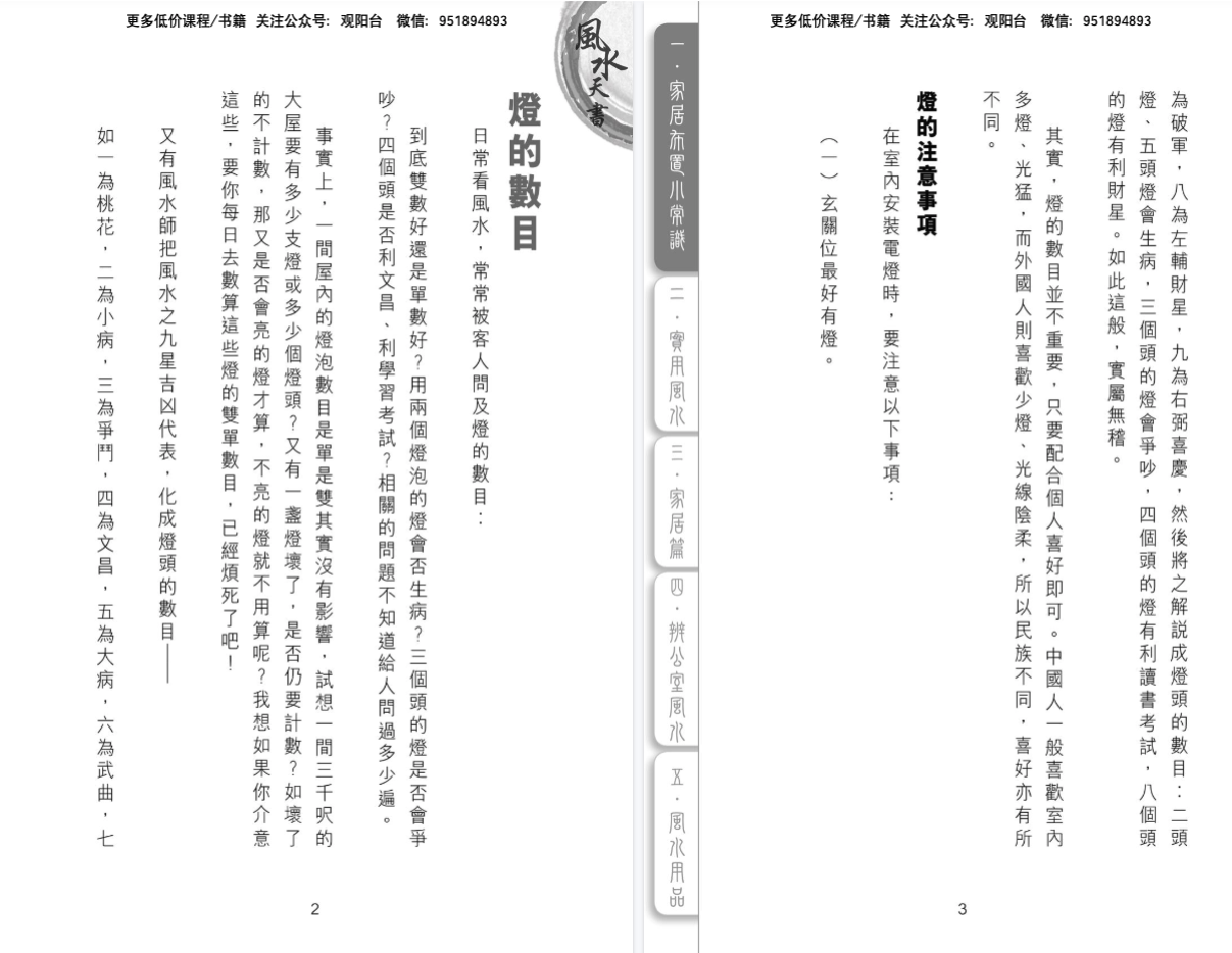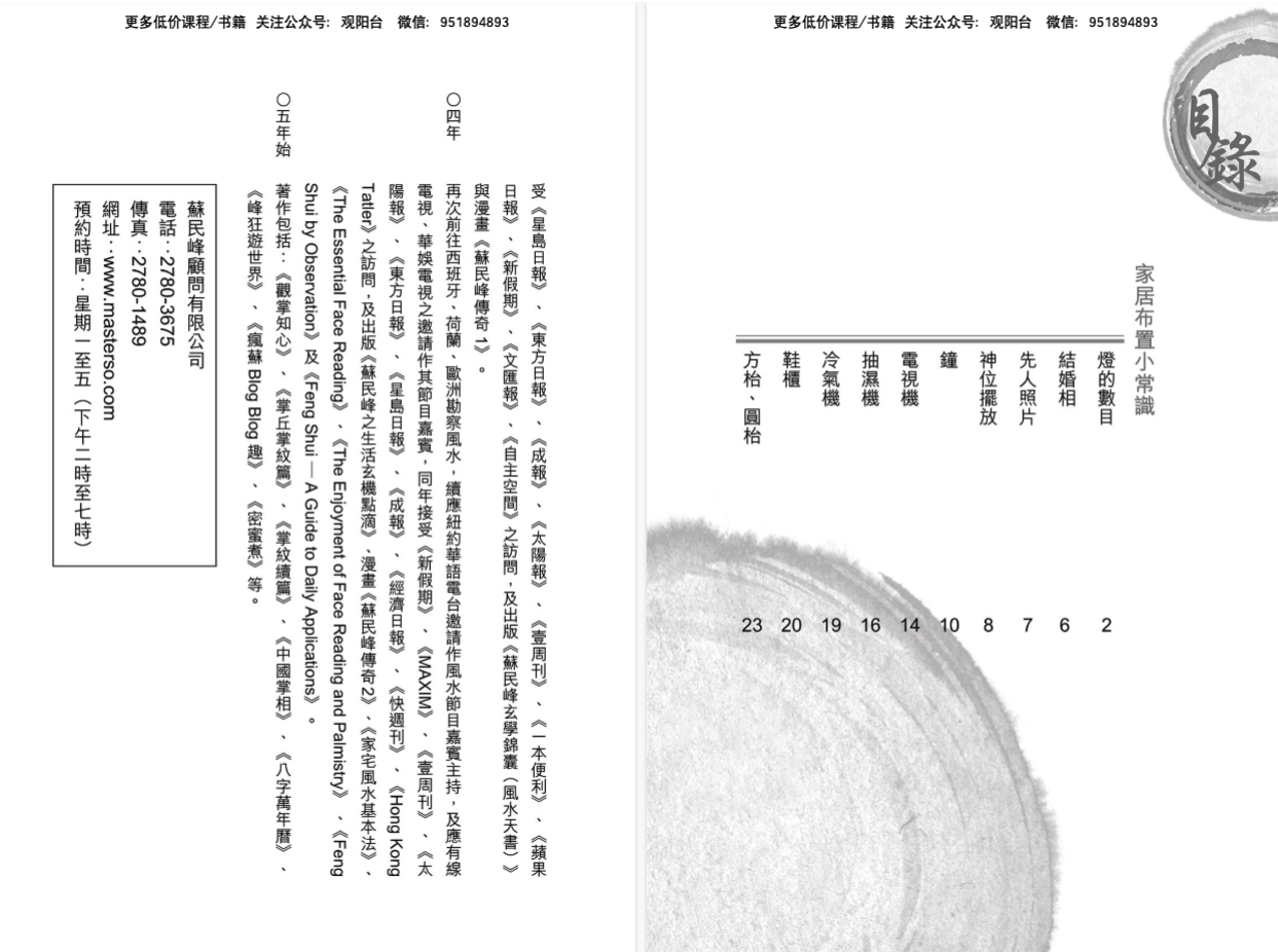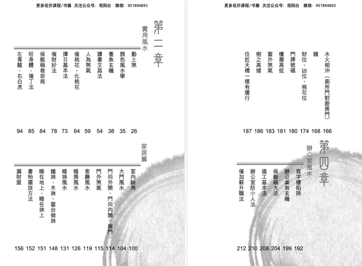 苏民峰 玄学锦囊《风水天书》282页.pdf,为阳宅风水书籍,介绍有各种调整的方法和很多阳宅风水知识点 声明:本站所有文章,如无特殊说明或标注,均为本站原创发布。任何个人或组织,在未征得本站同意时,禁止复制、盗用、采集、发布本站内容到任何网站、书籍等各类媒体平台。如若本站内容侵犯了原著者的合法权益,可联系我们进行处理。